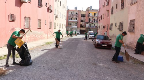 Toroslar Belediyesi Temizlik İşleri Müdürlüğü bünyesinde oluşturulan toplu temizlik ekibi, sırayla ilçe genelinde tüm mahallelerde genel temizlik çalışması yapıyor. Rutin temizlik programının yanında her gün 3 mahalle, 5 ekip ve iş makineleriyle temizleniyor. Toplu temizlik çalışmaları kapsamında; sokaklar, kaldırımlar süpürülüyor, yabani otlar biçiliyor ve boş arsalar temizlenerek görüntü kirliliğinden uzaklaştırılıyor. Ekipler son olarak Akbelen, Halkkent ve Güneykent mahallelerindeki toplu konutların ada içlerini detaylı bir şekilde temizledi. Her mahallenin ayda iki defa genel temizlik çalışmasından geçirilmesinden vatandaşlar da memnun. Mahalle sakinleri, yapılan genel temizlik çalışmasından duydukları memnuniyeti dile getirerek, Toroslar Belediye Başkanı Atsız Afşın Yılmaz'a ve ekibine teşekkür etti.
